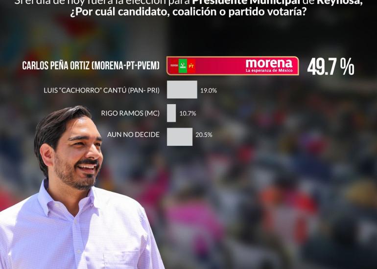 - Acapara el 49.7% en intención de voto de reynosenes.