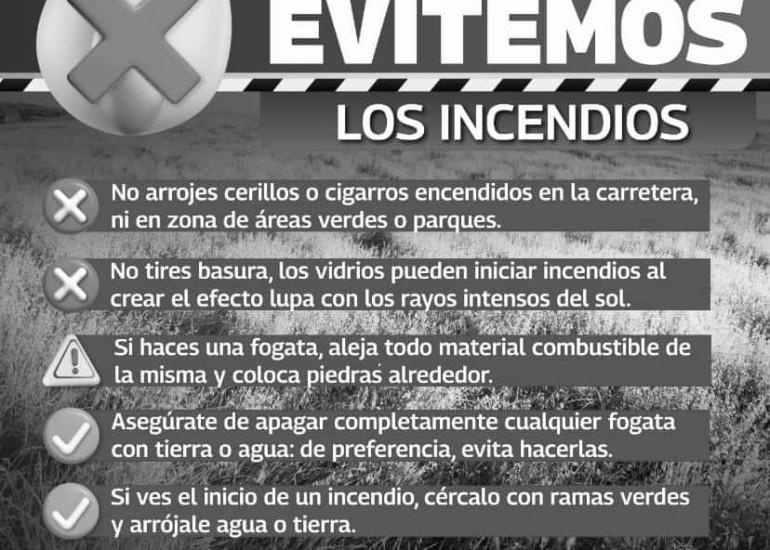 Se pide no arrojar cerrillos o cigarros encendidos en áreas verdes, carreteras o parques, no dejar vidrios o basura en terrenos baldíos así como asegurarse de apagar fogatas.