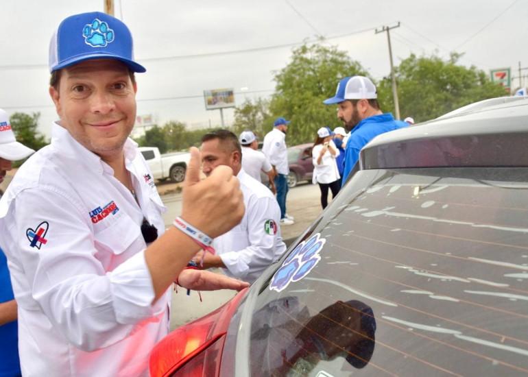 Está tarde, Luis Cantú, acompañado de su esposa Karen Elizondo y su equipo de trabajo, realizaron un evento de pegoteo de calcas en una importante vialidad, donde la gente dio una muestra de confianza para que el próximo dos de junio inicie una nueva historia.