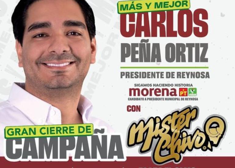 Carlos Peña Ortiz, candidato de la coalición ‘Sigamos Haciendo Historia’ por los partidos Morena, PT, y Verde Ecologista de México, invita a toda la ciudadanía al primer de 5 grandes cierres de su campaña electoral. El evento se llevará a cabo este viernes 24 de mayo a las 6:30 p.m. en la plaza de la Colonia el Olmo, ubicada en la calle G. Pedraza sin número.