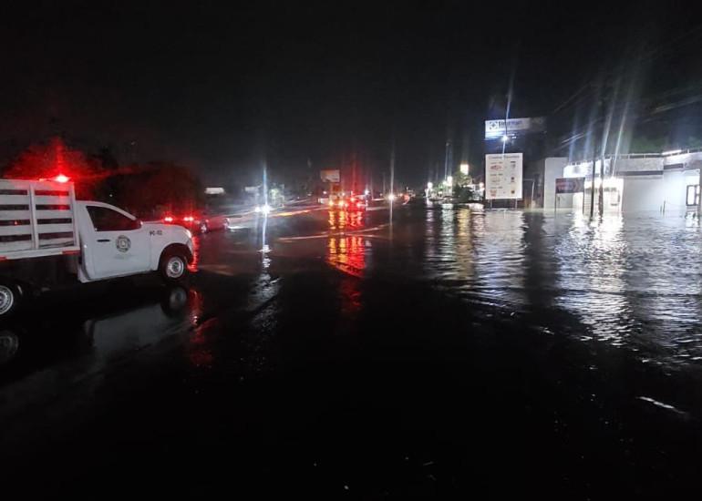 Protección Civil reporta que un total de ocho colonias presentaron inundaciones durante lo más intenso de la lluvia, sin embargo, el nivel del agua disminuyó rápidamente sin que se generarán problemas en los hogares.