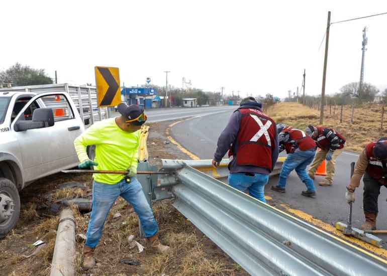 Haciendo énfasis en la seguridad de los automovilistas, el Presidente Municipal, Carlos Peña Ortiz, coordinó con cuadrillas de Servicios Públicos Primarios, una jornada para la reparación e instalación de nuevas vallas de contención en la carretera Ribereña a la altura del viaducto Anzadúas.