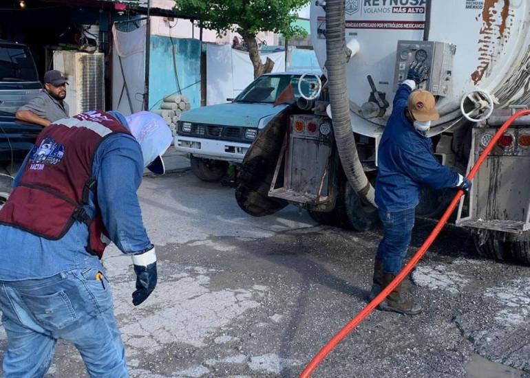 A fin de reducir los niveles de línea y con el objetivo de evitar los encharcamientos en el sector, siguiendo las indicaciones del Presidente Municipal, Carlos Peña Ortiz, la Comapa Reynosa0 llevó a cabo el desazolve de red sanitaria en calles del fraccionamiento San Valentín.