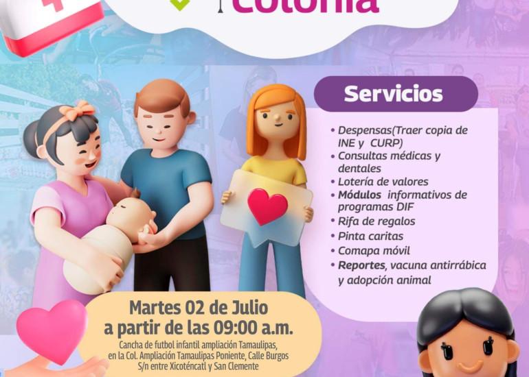 El evento se llevará a cabo a partir de las 9:00 horas, con el objetivo de acercar diversos servicios y programas a la comunidad, el martes 02 de julio en la cancha de fútbol infantil Ampliación Tamaulipas, ubicada en la Colonia Ampliación Tamaulipas Poniente, en Calle Burgos S/N, entre Xicoténcatl y San Clemente.