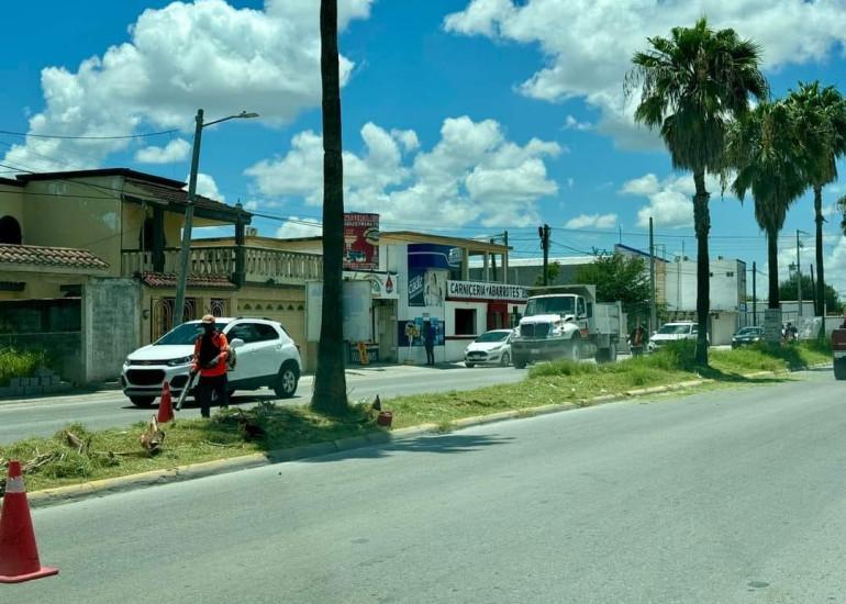 Cuadrillas de la Coordinación General de Servicios Públicos Primarios atendieron las instrucciones del Presidente Municipal, Carlos Peña Ortiz, aplicando una extensa jornada de saneamiento a la calle Rodolfo Garza Cantú.