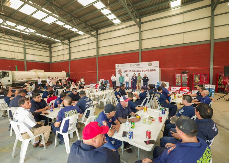 El Presidente Municipal Carlos Peña Ortiz ofreció un convivio por el Día del Bombero para festejar a los integrantes de Protección Civil y Bomberos de Reynosa, reconociendo el valor y aprecio a su trabajo, por el sacrificio mostrado en su importante desempeño a favor de la sociedad.