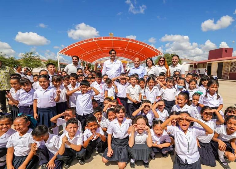 "Lo que queremos es que estén cómodos en sus escuelas, y puedan seguir desarrollándose y aprendiendo porque los sueños de ustedes son los sueños de todos nosotros", dijo a los niños acompañado por el Director Jorge Luis Ramírez González.