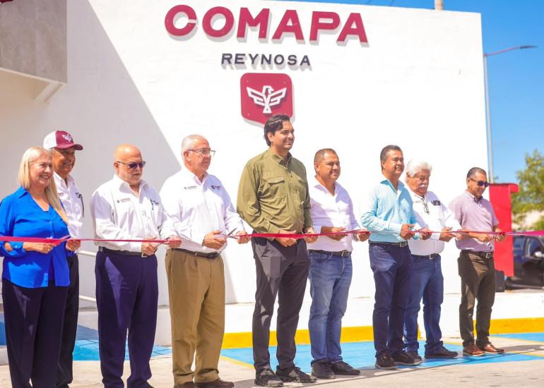 El Presidente Municipal Carlos Peña Ortiz inauguró una nueva sucursal de la Comisión Municipal de Agua Potable y Alcantarillado de Reynosa, COMAPA, en la Plaza IRCA del fraccionamiento Lomas Real de Jarachina Sur, avenida Loma Dorada con San Javier, para facilitar el acceso a los habitantes del sector.