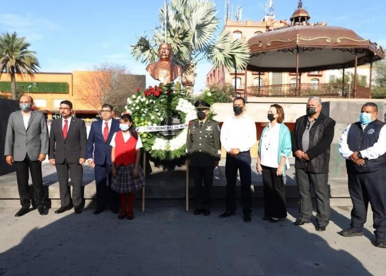 En representación del Presidente Municipal Carlos Peña Ortiz, el Secretario del Ayuntamiento, José Luis Márquez Sánchez se pronunció en el discurso de la guardia de honor, ante el busto del Benemérito de las Américas, Don Benito Juárez García, este lunes 21 de marzo, a 216 años de su nacimiento.