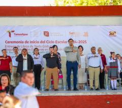 Inauguraron el Alcalde Carlos Peña Ortiz y Comisionado de Energía de Tamaulipas, José Ramón Silva Arizabalo inicio de clases 2024
