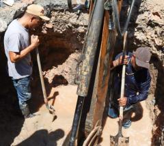 Trabaja COMAPA en la reparación de una fuga de agua potable en la Zona Centro