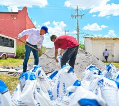 Entrega Alcalde Carlos Peña costales de arena a familias ante pronósticos de lluvias
