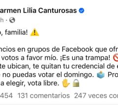ALERTA CARMEN LILIA CANTUROSAS POR ROBO DE CREDENCIALES DE ELECTOR A TRAVÉS DE FACEBOOK