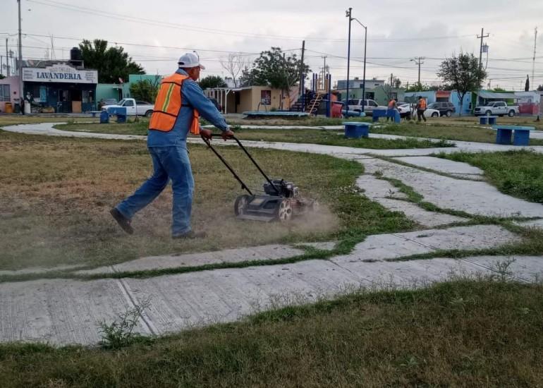 Personal de Servicios Públicos Primarios de Río Bravo, continúa realizando trabajos de limpieza en espacios públicos, parques y jardines; ahora en la colonia Las Brisas 1 y 2.