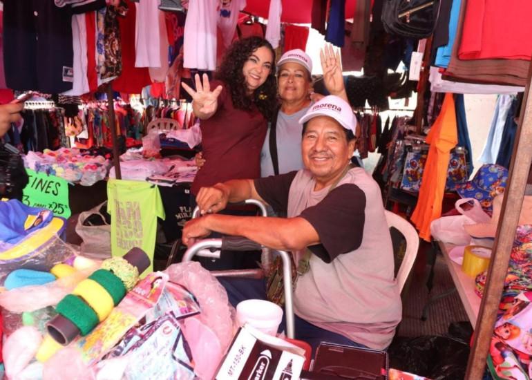 Ahí la candidata Olga Sosa Ruiz platicó con los comerciantes, con vendedores de ropa, vendedores de productos diversos, canasta básica, alimentos preparados, herramientas, entre otros productos más, que son parte de las necesidades de las familias.