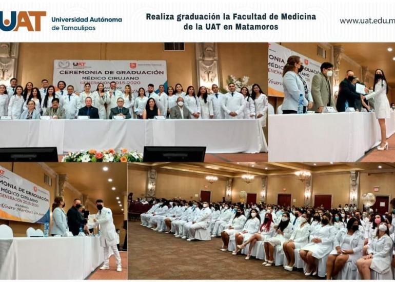 La Facultad de Medicina e Ingeniería en Sistemas Computacionales de Matamoros de la Universidad Autónoma de Tamaulipas (UAT) llevó a cabo la ceremonia presencial de graduación de ochenta y seis estudiantes integrantes de la generación 2015-2020.