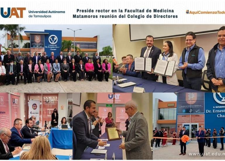 En el marco de las actividades para celebrar el 50 aniversario de su fundación, la Facultad de Medicina e Ingeniería en Sistemas Computacionales de Matamoros (FMISCM) fue sede de la reunión mensual del Colegio de Directores de la Universidad Autónoma de Tamaulipas (UAT).