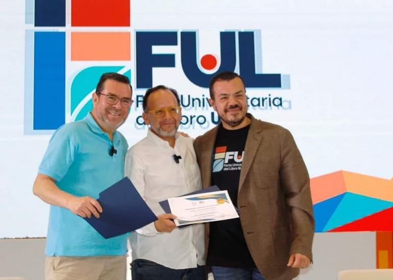 Invitados para disertar sobre su libro en el evento realizado en el Gimnasio Olímpico del campus Tampico, los ponentes fueron recibidos por el C.P. Guillermo Mendoza Cavazos, rector de la Universidad Autónoma de Tamaulipas (UAT), quien además les entregó un reconocimiento por contribuir con la casa de estudios a difundir la lectura y a formar opinión en la comunidad universitaria.