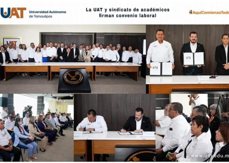 La Universidad Autónoma de Tamaulipas (UAT) y el Sindicato Único de Trabajadores Académicos (SUTAUAT) firmaron el Contrato Colectivo 2023, que rige las relaciones laborales entre la institución y el gremio docente universitario.