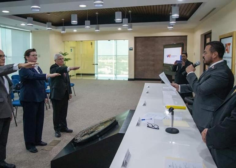 En ceremonia efectuada en la sala ejecutiva del Centro de Gestión del Conocimiento del Campus Victoria, rindieron protesta como integrantes de ese órgano colegiado: el Ing. Pedro Mier Llaguno, presidente; la Mtra. Blanca Saldívar Ruedas, secretaria; y el Lic. Rodolfo Higuera Terán, como vocal.