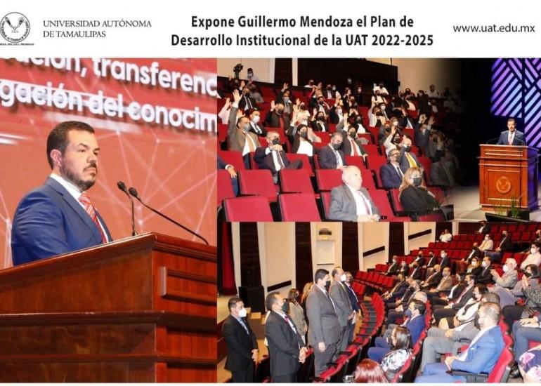 El C. P. Guillermo Mendoza Cavazos expuso el Plan de Desarrollo Institucional (PDI), en el que presenta los objetivos que enmarcan su proyecto de gestión al frente de la Universidad Autónoma de Tamaulipas (UAT) durante el período 2022-2025