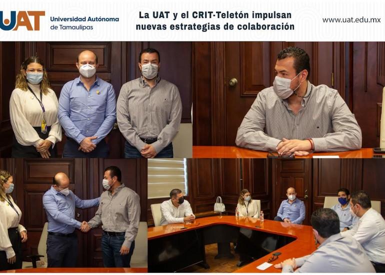 Ciudad Victoria, Tam.- El C. P. Guillermo Mendoza Cavazos, Rector de la Universidad Autónoma de Tamaulipas (UAT), sostuvo una reunión con directivos del Centro de Rehabilitación Infantil Teletón (CRIT), con el fin de continuar y generar trabajos de vinculación en conjunto para beneficiar a la comunidad universitaria y las familias tamaulipecas.