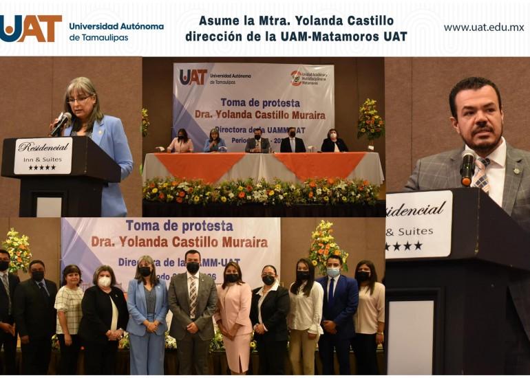 El Rector de la Universidad Autónoma de Tamaulipas (UAT), C. P. Guillermo Mendoza Cavazos, encabezó la ceremonia de toma de protesta de la Dra. Yolanda Castillo Muraira, como Directora de la Unidad Académica Multidisciplinaria Matamoros (UAMM) para el período 2022-2026.