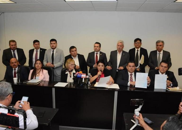 La diputada Úrsula Salazar Mojica, acompañada por los legisladores morenistas, informó en conferencia de prensa, que las denuncias han sido ingresadas y llevadas al ámbito federal por Morena a fin de que las acusaciones no sean encarpetadas como hubiera sucedido en la Fiscalía del Estado y confió en que las instancias les den la razón y se haga valer la justicia en contra de quienes han causado daño al erario del pueblo tamaulipeco.