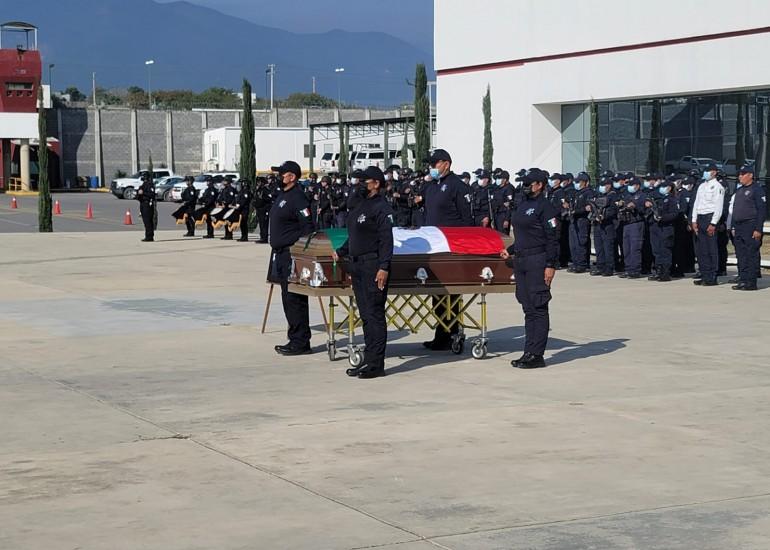 La ceremonia contó con la presencia de sus familiares y personal de la Secretaría de Seguridad Pública, quienes realizaron los honores de ordenanza y colocación del lábaro patrio sobre el ataúd.