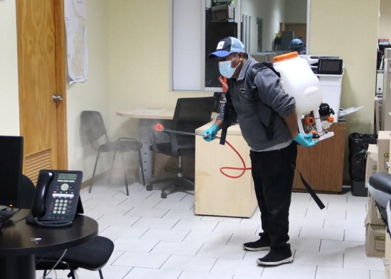 Con el objetivo de fortalecer la estrategia de prevención trazada por las autoridades sanitarias, la Secretaría de Seguridad Pública de Tamaulipas (SSPT) lleva a cabo programas de sanitización en sus áreas de trabajo.
