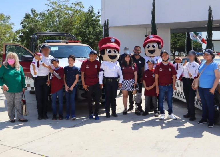 Uniformados con una gorra y playera oficial de la Guardia Estatal, las y los niños abordaron las unidades oficiales mientras que algunos efectivos les explicaban su funcionamiento, acompañados de botargas y marionetas simbólicas de la SSPT.