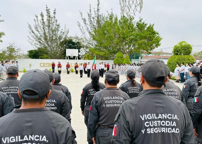 Para ello, cada centro conformó una escolta oficial y realizaron los honores de ordenanza que conmemora en esta fecha al lábaro patrio que representa a México.
