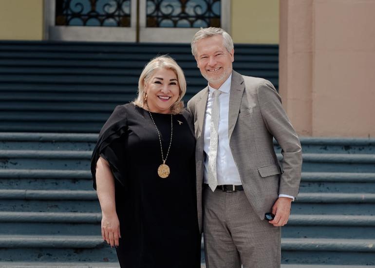 Posterior a su encuentro con el gobernador de Tamaulipas Américo Villarreal Anaya, el embajador de la Unión Europea en México Gautier Mignot, sostuvo una reunión de trabajo en Palacio de Gobierno con Adriana Lozano Rodríguez, titular estatal de la Secretaría de Finanzas en la cual se abordaron temas de profundo interés para las y los ciudadanos de Tamaulipas.