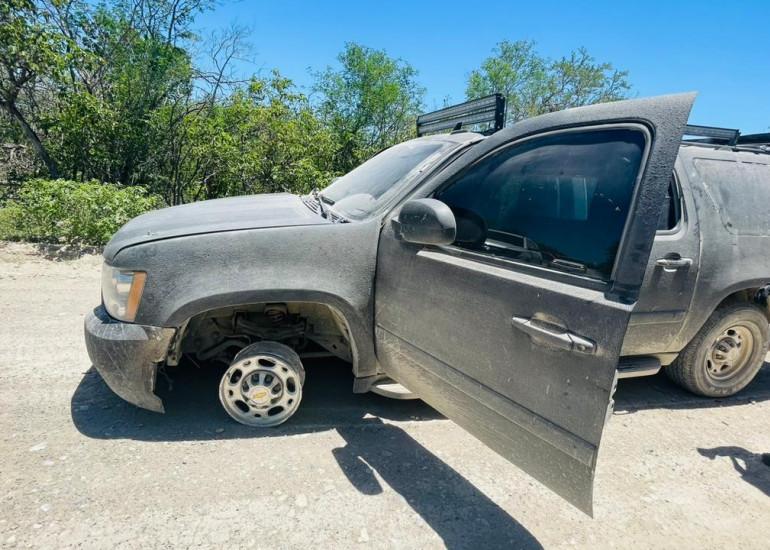 El reporte de Seguridad Pública indica que en Cruillas, se localizó una camioneta abandonada con impactos, ponchada y en el interior un chaleco táctico, cargadores y cartuchos.
