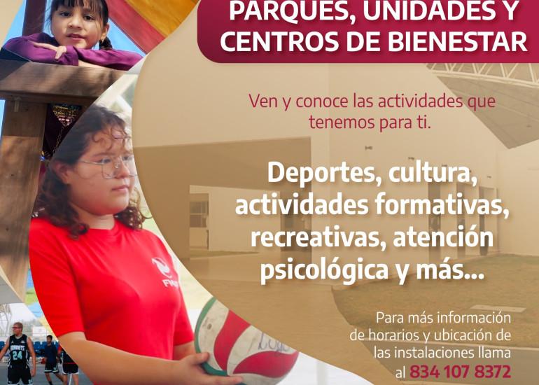 “La idea es que siempre haya actividades culturales, deportivas o de recreación en estos sitios. Actualmente están a disposición de todos los tamaulipecos 76 Parques, 17 Unidades y 15 Centros de Bienestar en casi todos los municipios”, aseveró Etienne Ruíz.