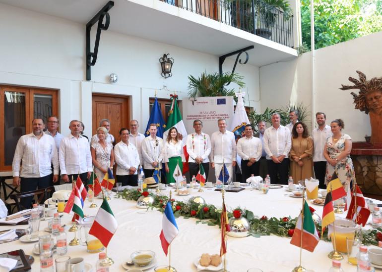 Durante su segundo día de visita a Tamaulipas, las y los representantes diplomáticos de Alemania, Austria, Bélgica, Dinamarca, España, Finlandia, Francia, Hungría, Irlanda, Italia, Países Bajos, Portugal, República Checa, Rumanía y Suecia, encabezados por el embajador de la Unión Europea en México, Gautier Mignot realizaron diversas actividades en Ciudad Victoria, iniciando con un desayuno en el que recibieron una amplia explicación de la riqueza histórica y cultural de la entidad.