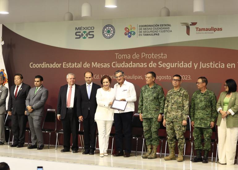 Al inicio del evento, en el que se dieron cita, legisladores, mandos militares y funcionarios de los tres niveles de gobierno, se guardó un minuto de silencio en memoria de Alejandro Martí, fundador de México SOS y del ex alcalde de Victoria, Pascual Ruiz García, quien también fue partícipe de estas Mesas Ciudadanas y además se entregó un reconocimiento a la presidenta saliente, Yolanda Barrera González.