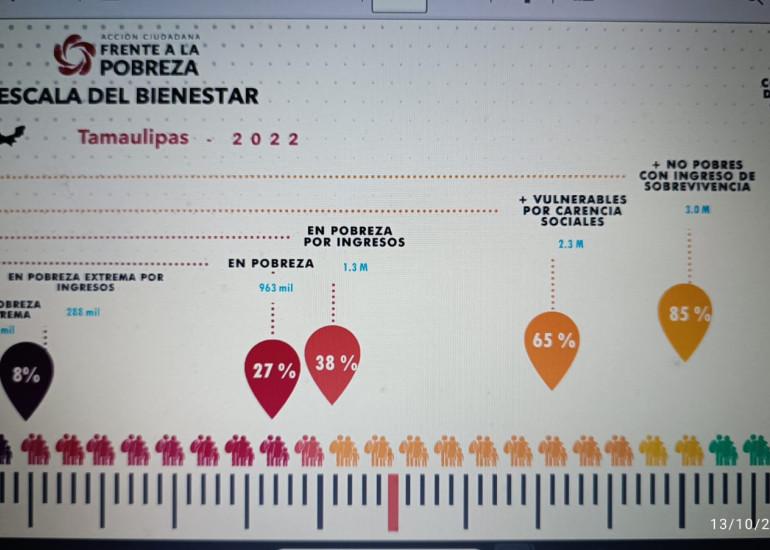 En Tamaulipas 85% de la población no tiene condiciones de bienestar; en esa entidad sólo 15% de los habitantes, 540 mil personas, cuentan con ingreso digno y vive sin carencias.