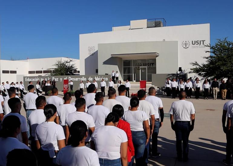 El rector de la USJT, Willy Zúñiga Castillo, acompañado de los directores, docentes, alumnos, personal en general, así como elementos que muy pronto se graduarán como guardias estatales, agradeció a las familias de los nuevos integrantes por la confianza depositada en esta etapa que hoy comienza.