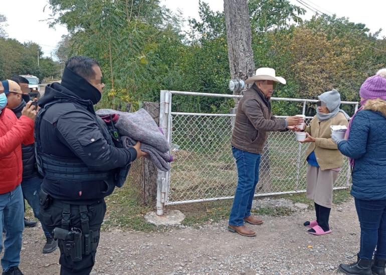 Güémez, Tamaulipas.- Con bebidas calientes, cobijas y prendas abrigadoras, personal de la Guardia Estatal en coordinación con Protección Civil y el Ayuntamiento de Güémez llevan a cabo el Operativo ‘’Carrusel’’ en diferentes ejidos de este municipio.