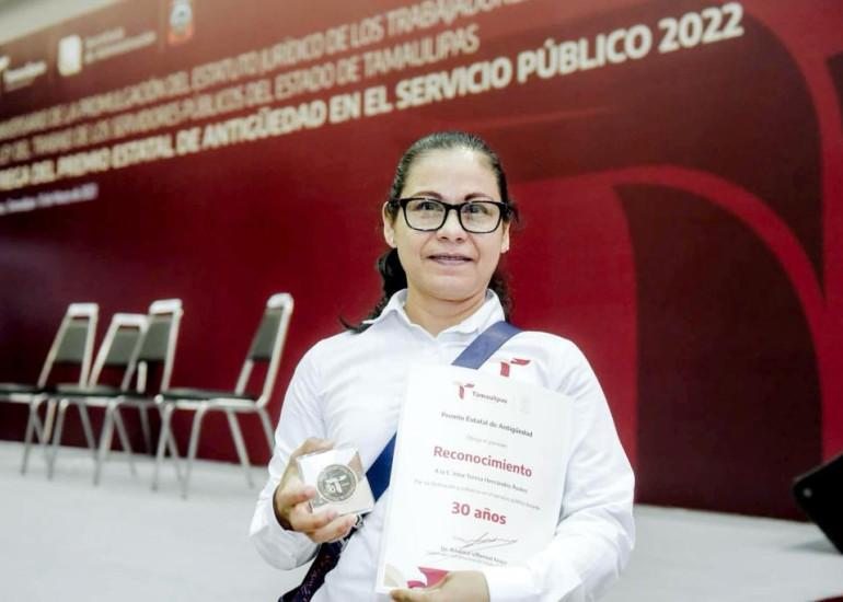 En cumplimiento a lo dispuesto en la Ley de Premios, Estímulos y Recompensas del Estado, y la Ley del Trabajo de los Servidores Públicos del Estado de Tamaulipas, la Secretaría de Administración emitió la convocatoria al Premio Estatal de Antigüedad en el Servicio Público 2023, considerando el tiempo efectivo de servicios prestados al 31 de diciembre de 2023, recibiendo en respuesta 970 solicitudes, quienes recibirán este reconocimiento que consiste de una medalla, diploma y cheque, así lo informó el titular de la dependencia Jesús Lavín Verástegui.