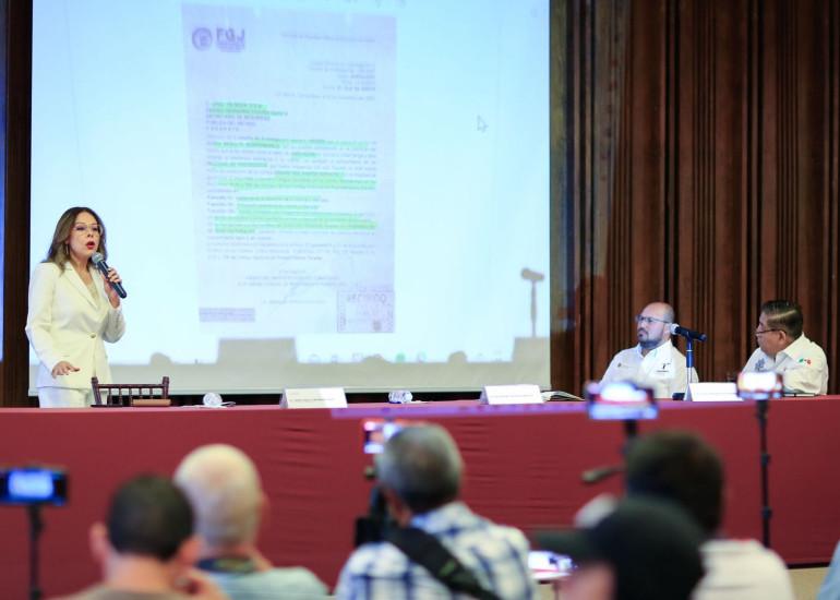 En conferencia de prensa, acompañada por el secretario general de Gobierno, Héctor Joel Villegas González, y por el secretario de Seguridad Pública, Sergio Hernando Chávez García, la consejera jurídica detalló la cronología de las acciones del Estado para responder a las peticiones de seguridad que presentó en su momento Noé Ramos, primero por un periodo de cinco meses, hasta el 29 de mayo de 2023 y posteriormente del 30 de noviembre hasta el 30 de diciembre del año 2023.