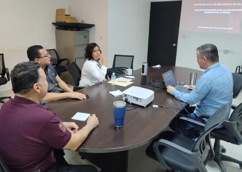 En la reunión se presentaron los casos registrados en esta temporada de calor, la cual dio inicio desde el mes de marzo y a la fecha suman 5 pacientes de los cuales 3 presentaron golpe de calor, 1 con deshidratación y 1 con insolación, en los municipios de Tampico, Aldama, Victoria, Reynosa y Miguel Alemán, respectivamente.