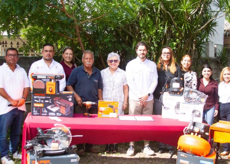 En Aldama, el taller Carpintería Castor recibió maquinaria y equipo especializado como sierra caladora, router industrial, lijadora de banda, rotomartillo inalámbrico, compresor de aire y sierra inglete.
