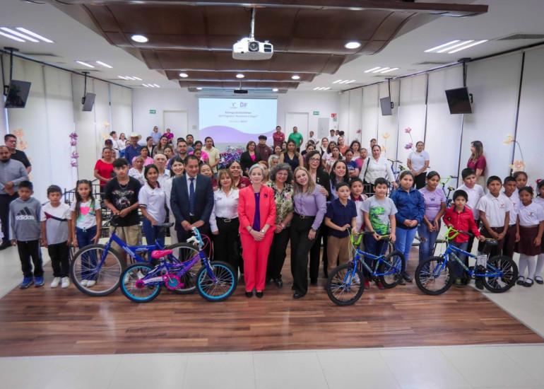 Con el propósito de garantizar el bienestar, reducir el ausentismo y la deserción escolar de niñas y niños en comunidades de atención prioritaria, el Gobierno de Tamaulipas, a través del Sistema DIF Tamaulipas presidido por la doctora María de Villarreal, y la Fundación Telmex Telcel, realizaron la entrega de 100 bicicletas a igual número de beneficiarios de siete municipios del estado.