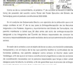 Recibe oficina de Cabeza de Vaca carta de Américo que notifica Comisión de Transición