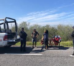 Guardia Estatal apoya con hidratación, comida y seguridad a cicloviajeros japoneses