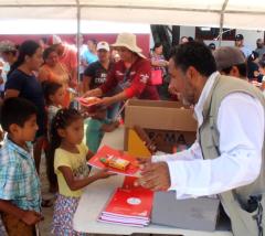 Reciben infantes útiles escolares y apoyan liberación de crías de tortugas marinas en Tamaulipas