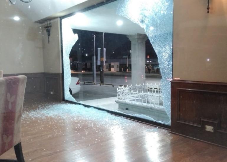 En el inmueble denominado Hotel Virrey dañaron la fachada, puertas y ventanas.